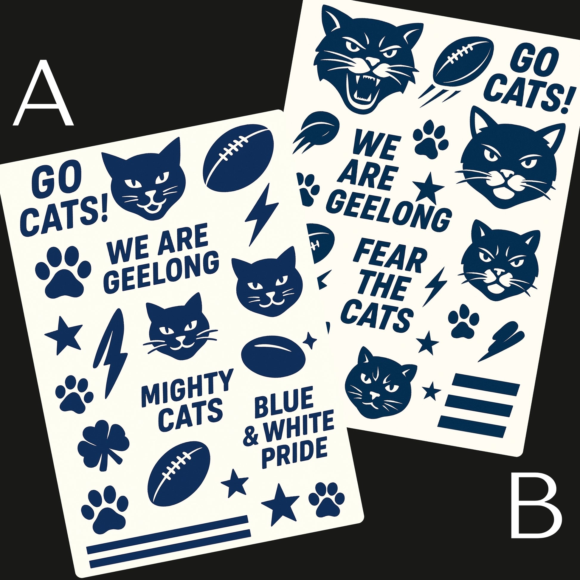 Whether it’s cheering on your AFL team or a Private Party event, our temporary tattoos are bold, fun, and a great way to stand out.