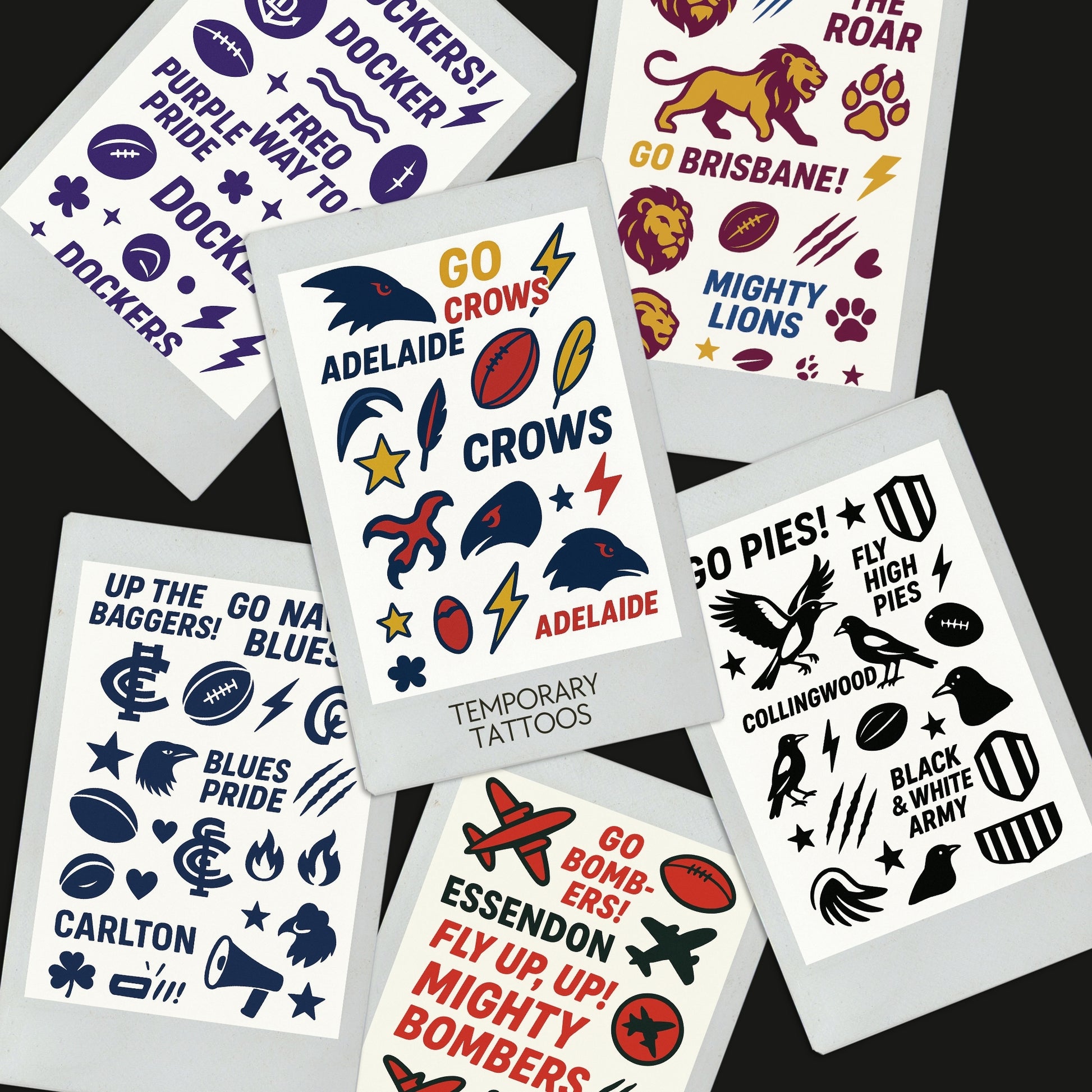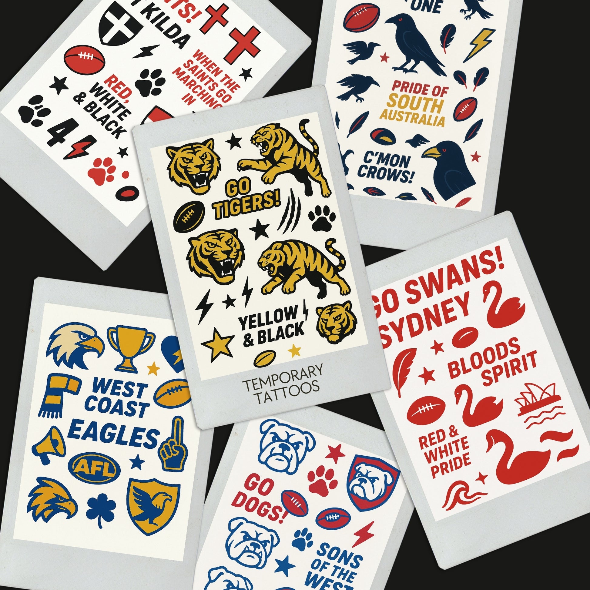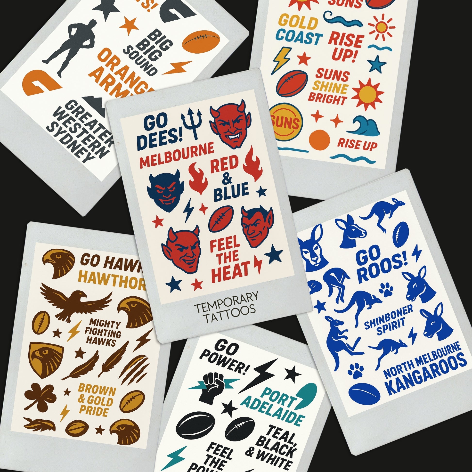 A6 Temporary Team Tattoos – Perfect for Supporting your Fav AFL Team or Party Favours!